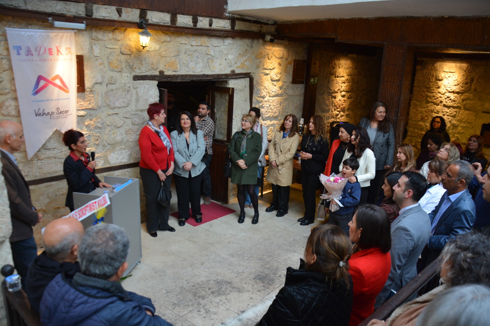 Büyükşehir Belediyesi Kültür, Sanat ve Sosyal İşler Dairesi Başkanı Tüba Kaya Sanal ile TADEKA Sözcüsü Dr. Ali Cerraoğlu, açılış programında söz alarak yapılan çalışmalarla ilgili bilgi verdiler.